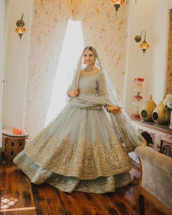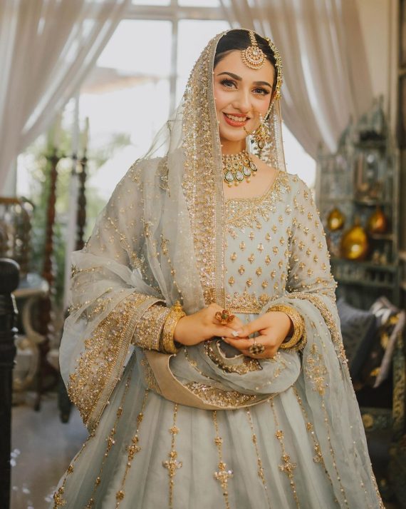 She recently participated in a bridal shoot for Mahas Photography, stunning everyone in an ice blue jora adorned with beautiful and traditional jewelry, complemented by exquisite and ethnic makeup.