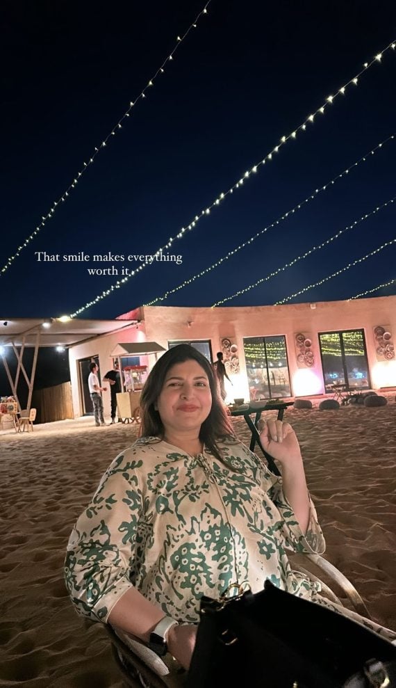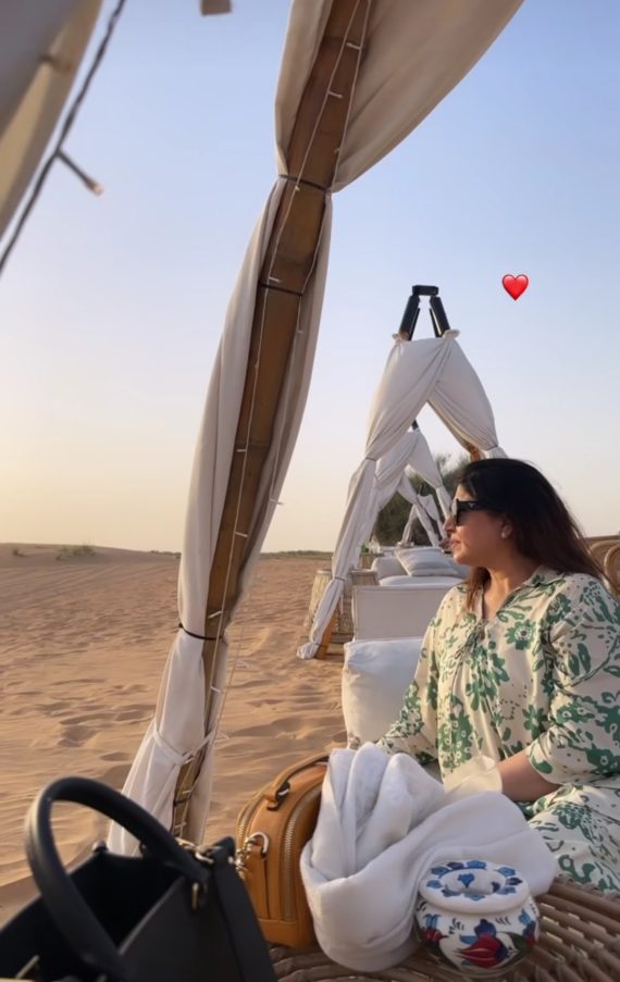 Lately, the gorgeous actress has been making headlines for her luxurious Dubai vacation that began soon after her birthday. She is enjoying a long vacation in Dubai with her daughter Dr. Anya Ali Hamza. The two have been sharing amazing pictures from their dream vacation. Shugufta Ejaz has also been sharing clicks with her nephew. Today, Anya shared beautiful pictures from Sonara Camp where the two had a luxury desert experience. They also experienced the beautiful sunset of the desert. Anya also shared pictures from other recreational activities as well.