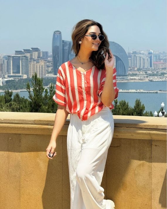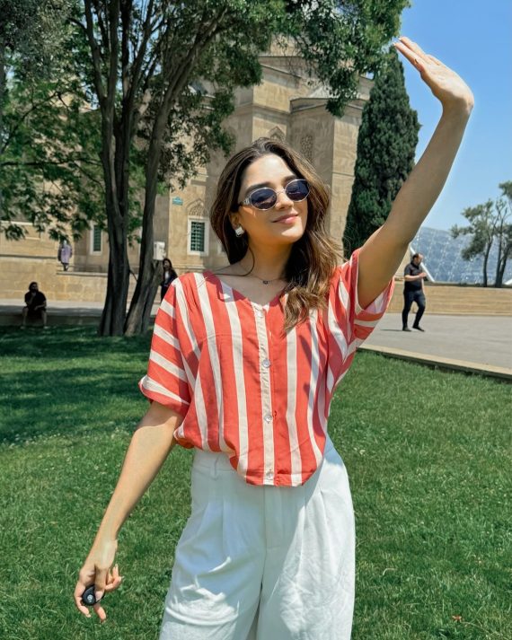 The super stunning actor Romaisa Khan is currently enjoying her vacation in Baku, Azerbaijan. She has been sharing beautiful pictures from her serene vacation, including famous places in Azerbaijan. Romaisa Khan’s gorgeous solo pictures are capturing fans’ attention, and they love her styling. Fans are praising her choice of gorgeous Western outfits.