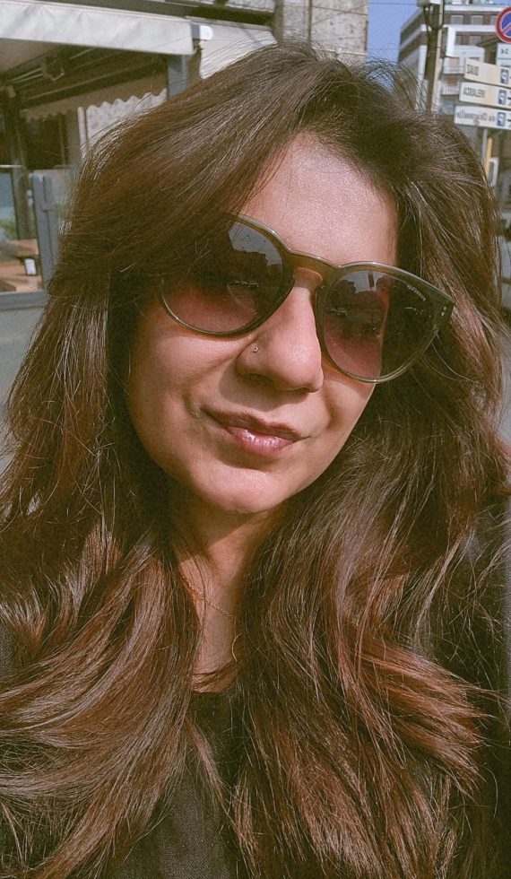 Areej Mohyudin shares eight-photo gallery without caption. She wears a red, embroidered...