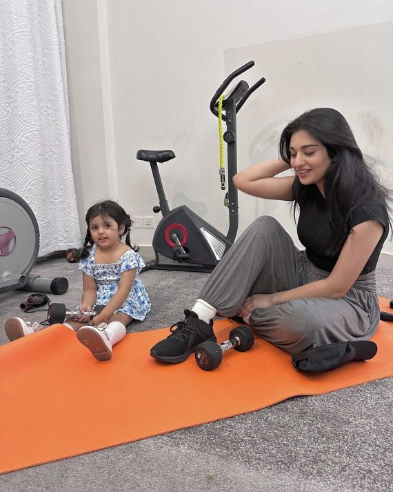 Sarah Khan shared stunning pictures with her daughter, Alyana Falak. Her husband, Falak Shabir, also posted adorable family reels and photos. He recently shared beautiful pictures of them twinning in pink outfits and posted a reel of himself giving a red rose to his wife, Sarah. Here are the adorable new pictures:
