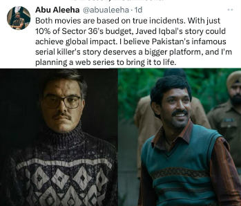 Abu Aleeha, director of the film “Javed Iqbal”, took to social media to express his thoughts on the limited budget for his movie, which is based on the life of Pakistan’s most notorious serial killer. In his post, Aleeha pointed out that had “Javed Iqbal” received even 10% of the budget allocated to India’s “Sector 36”, another true crime film, it could have had a significant global impact.