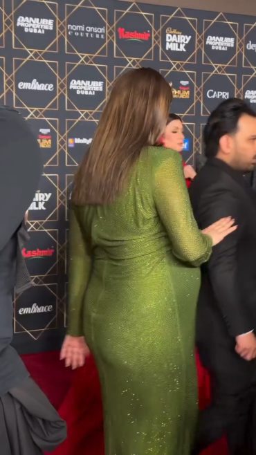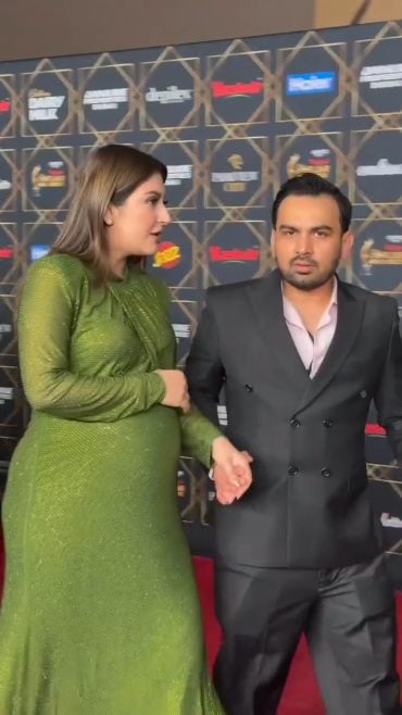 Hiba wore a green shimmery gown to the show, but her choice sparked significant backlash. Since pregnancy announcements and shoots often don’t resonate well with the audience, many criticized her for opting for a form-fitting dress. Additionally, the overall look of the gown failed to gain approval from the public. Here’s a glimpse of Hiba’s look: