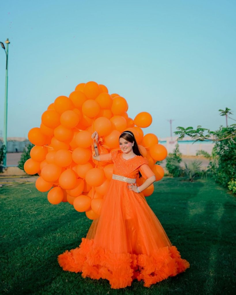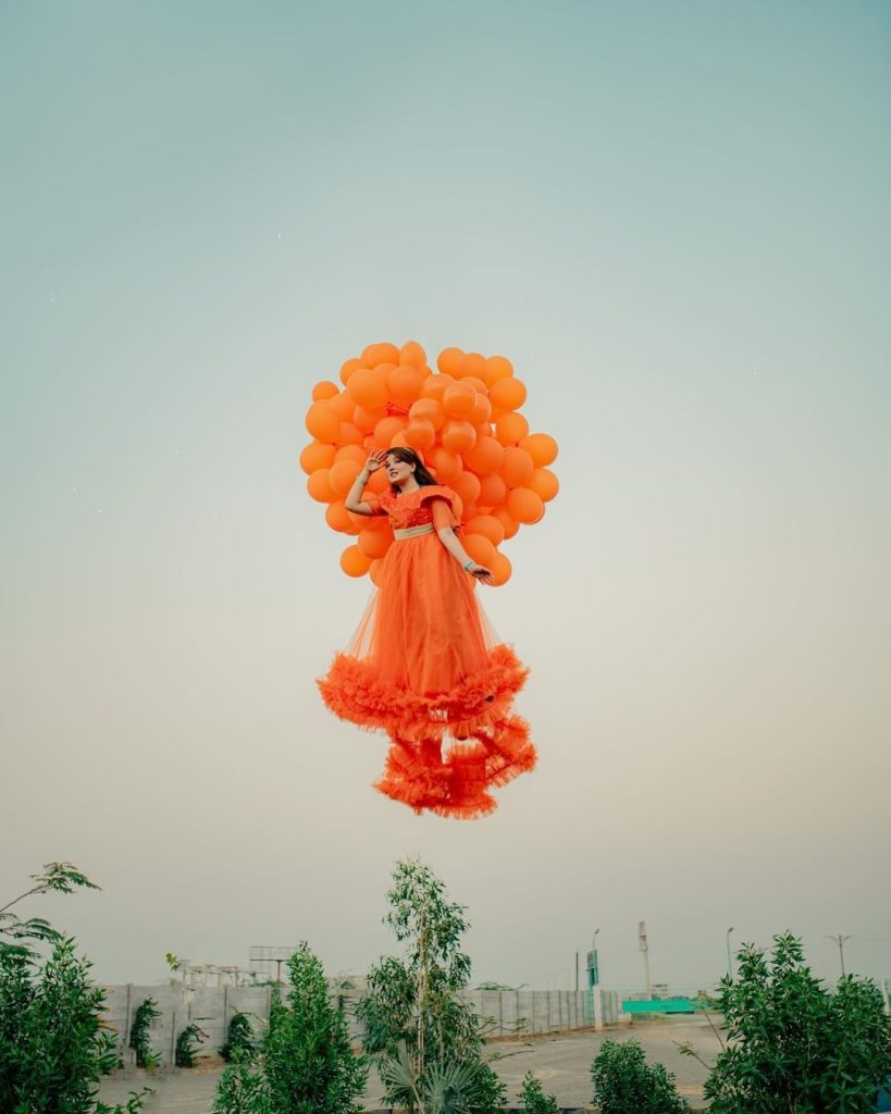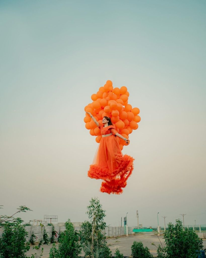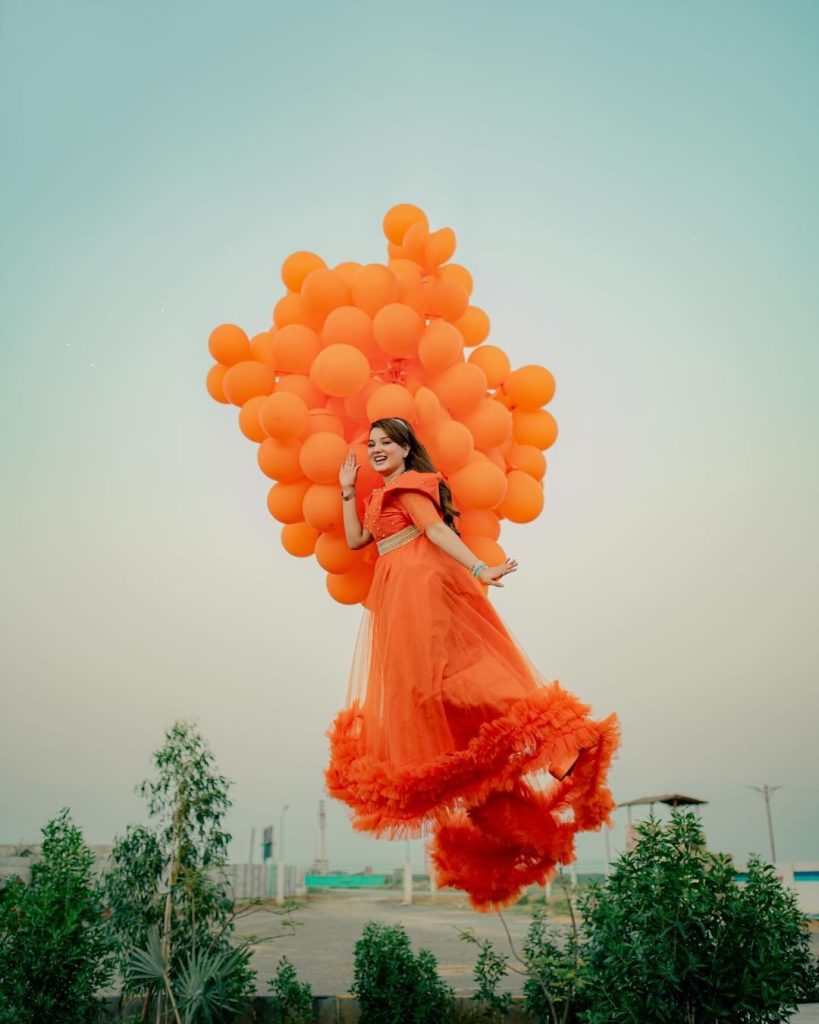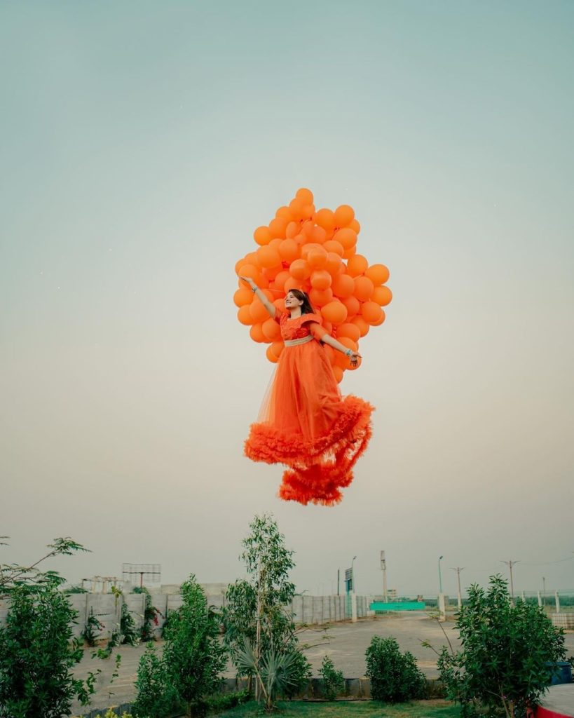 Recently, Rabeeca shared a fairy-themed pre-birthday photoshoot on her official Instagram account. In the enchanting shoot, she wore a flowing orange gown, complemented by matching balloons, and many of the pictures feature her in a playful flying pose.