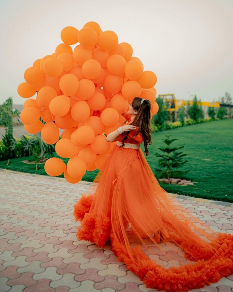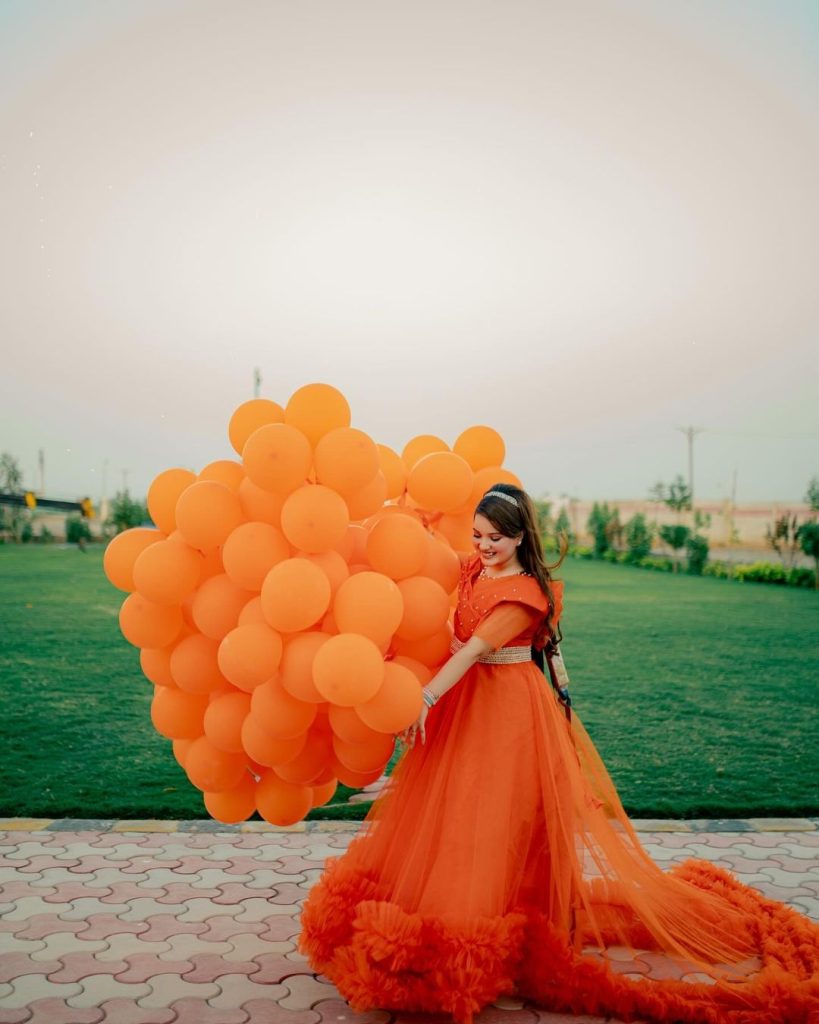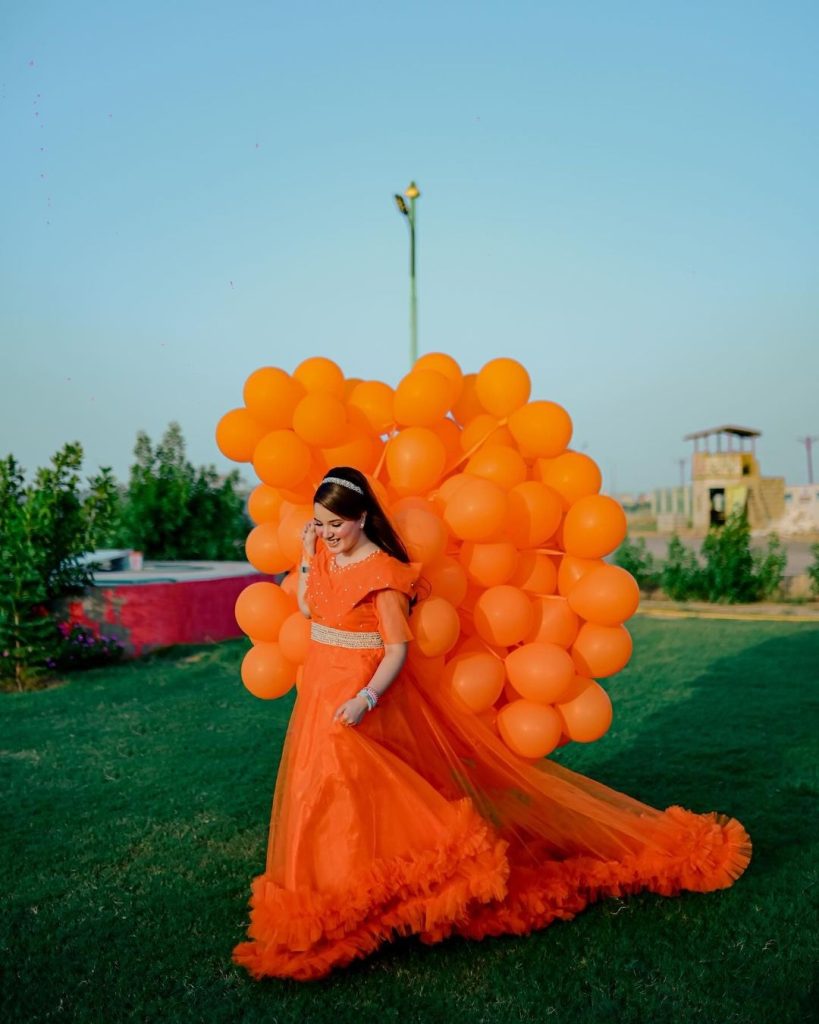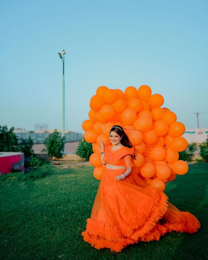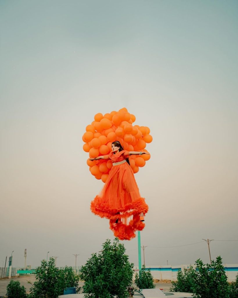 Recently, Rabeeca shared a fairy-themed pre-birthday photoshoot on her official Instagram account. In the enchanting shoot, she wore a flowing orange gown, complemented by matching balloons, and many of the pictures feature her in a playful flying pose.