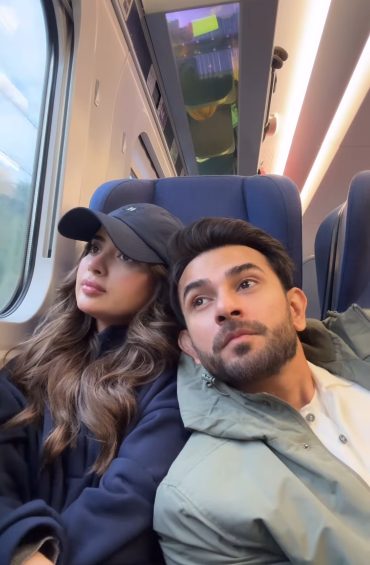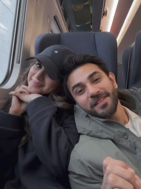 Currently, Saboor Aly and Ali Ansari are enjoying quality time in the UK. Saboor has shared stunning new Instagram reels from Edinburgh, Scotland. In her latest reel, she showcases her train journey with her husband, along with her quick go-to makeup routine. The couple posed together, looking absolutely adorable. Here are some beautiful pictures we’ve gathered for you: