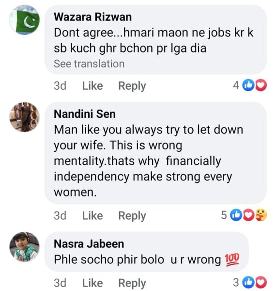 He said, “women who earn do not have the guts to spend that money on their families. Men on the other hand have the power to spend on their family from the very first time they get paid. This is what Syed Ali Haider thinks about women who earn their own keep.”