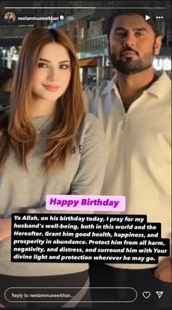 In her message, Neelam wrote, “Ya Allah, on his birthday today, I pray for my husband’s well-being, both in this world and the Hereafter. Grant him good health, happiness, and prosperity in abundance. Protect him from all harm, negativity, and distress, and surround him with Your divine light and protection wherever he may go.”