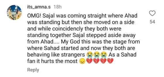 Sajal Aly and Ahad Raza Mir’s fans got emotional seeing their beloved stars on the same stage. Many felt nostalgic, recalling the time when the two stood together to receive their award for Favourite On-Screen Couple of Television.