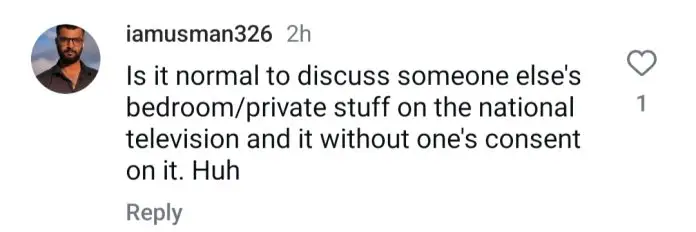 The internet is criticizing the discussion of bedroom activities on television, arguing that public figures need to understand what is appropriate for TV and what should be avoided.