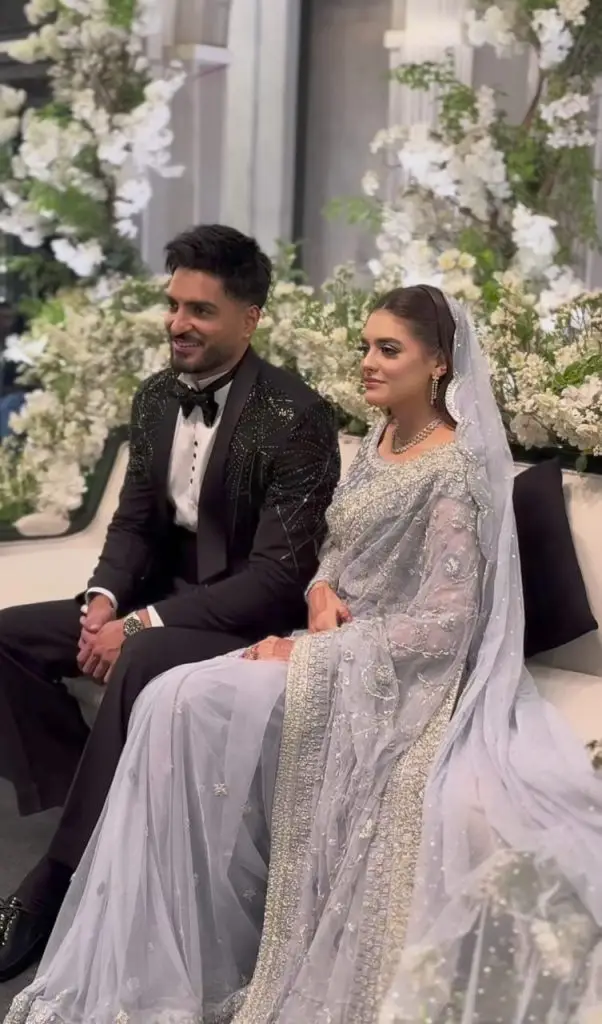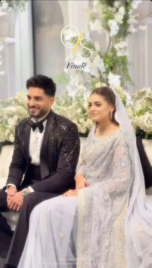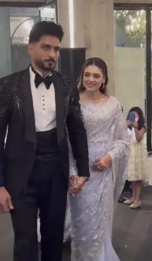 Omer Shahzad and Shanzay Lodhi wrapped up their wedding festivities with a glamorous reception last night. The star-studded event featured appearances by Hira Khan, Saboor Aly, Ali Ansari, Faysal Quraishi, and many other celebrities. The couple was stunned as they made their grand entrance at the venue, looking radiant together. Here are some beautiful moments captured from their reception: