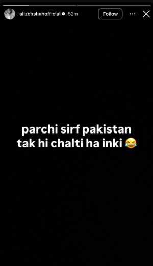 She continued her fiery streak with another statement on Instagram. She sarcastically remarked that many people in the industry can only get work through parchi, adding that such tactics only work in Pakistan. Expressing pride in her integrity, she said she never sold her self-respect or participated in behind-closed-doors rituals to land projects. Alizeh also criticized the so-called “professionalism” of those who use manipulative tactics to stay relevant and employed. She added that the moment someone refuses to play along with these ugly games, they’re quickly labeled as badtameez.