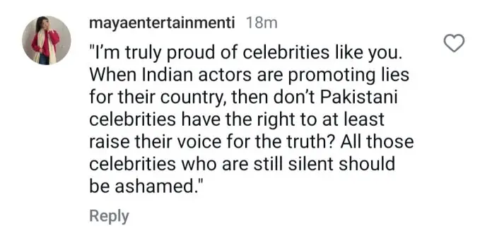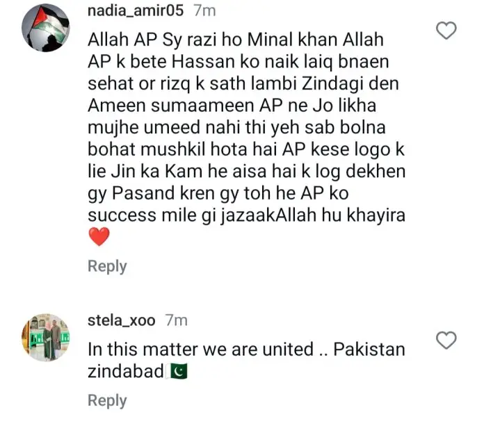 Minal Khan is earning praise for taking a strong stance. Fans say she has voiced the emotions many of them have been feeling. One user commented, “You have used your platform rightfully.” Another wrote, “We are proud of you for standing up for Pakistan.” Someone else added, “Finally, a sensible celebrity is supporting the country.” This reflects how her message has deeply resonated with the public.