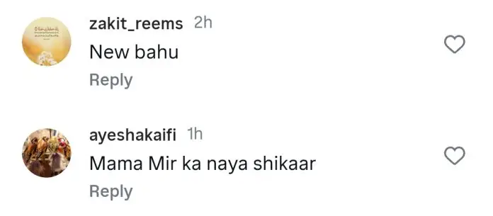 The internet is now reacting to both stars being spotted together at one event. One said, “So is the new daughter-in-law done.” Another added, “Where is Ramsha?” One said, “He likes everyone he works with, and then his mom chooses them to be the next daughter-in-law.” This is what they said: