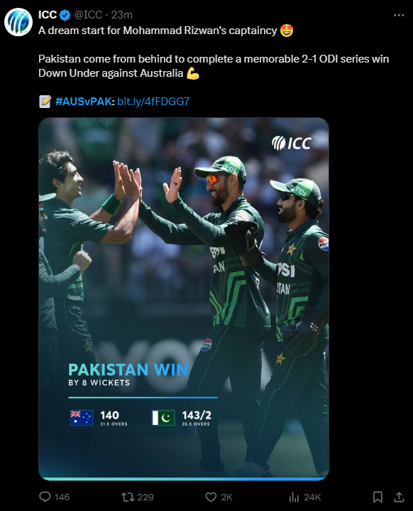ICC calls it a dream start for Rizwan’s captaincy.
