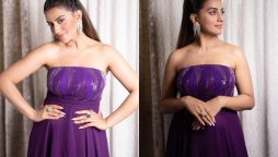 Akshara Singh Looks Gorgeous In Purple Sparkling Gown
