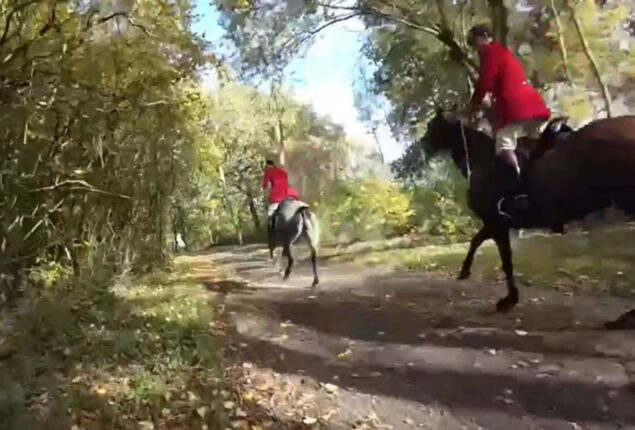 The moment an animal rights activist was hit by a speeding vehicle during a fox hunting meet is captured in...