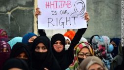 Girls from Karnataka, India, who had petitioned the courts for a court order allowing them to wear the Hijab in...