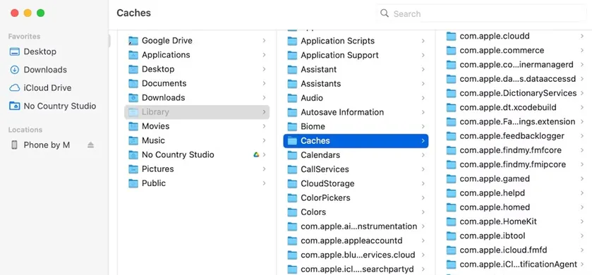 Step 2: Go to the folder called “Caches” inside the “Library” folder.