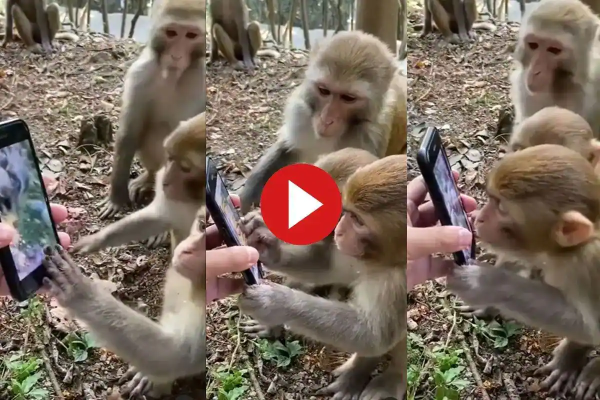 A humorous video of monkeys being shown a video of another set of monkeys on a smartphone is going viral on social media. The footage was posted on Instagram by user ‘helicopter yatra_’.
