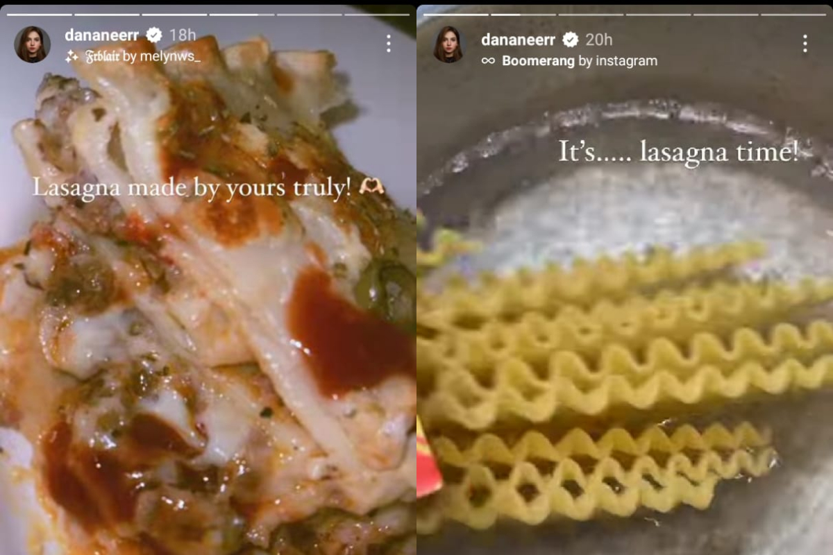 It doesn’t matter where she is – be it on the sets or during vacations – she has always been spotted with yummy foods on Instagram. This Thursday was no different for her. Dananeer took to the Instagram stories to cook the delicious Lasagna of her Thursday binge – and it included some crispy pizza to to the other story for an option.
