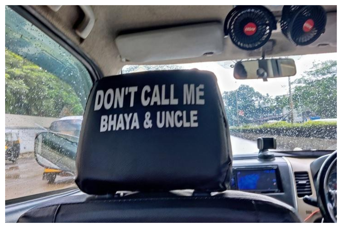 Sohini M, a Twitter user, shared a photo of a message on the back of an Uber seat that read, “Don’t call me bhaya & uncle.”