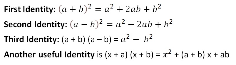 Algebraic Expressions have three key identities. These identities are obtained by multiplying binomials.
