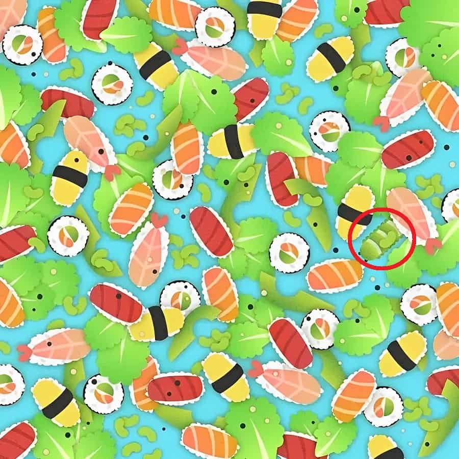 Optical Illusion: Find a caterpillar among sushi rolls in 7 seconds