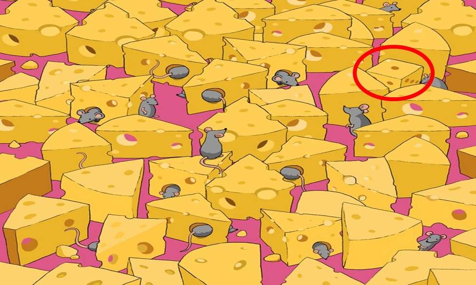 You must find the dice among the cheese and mice in this puzzle. The dice are effectively disguised in the image. To spot the dice, you must have excellent observation abilities.