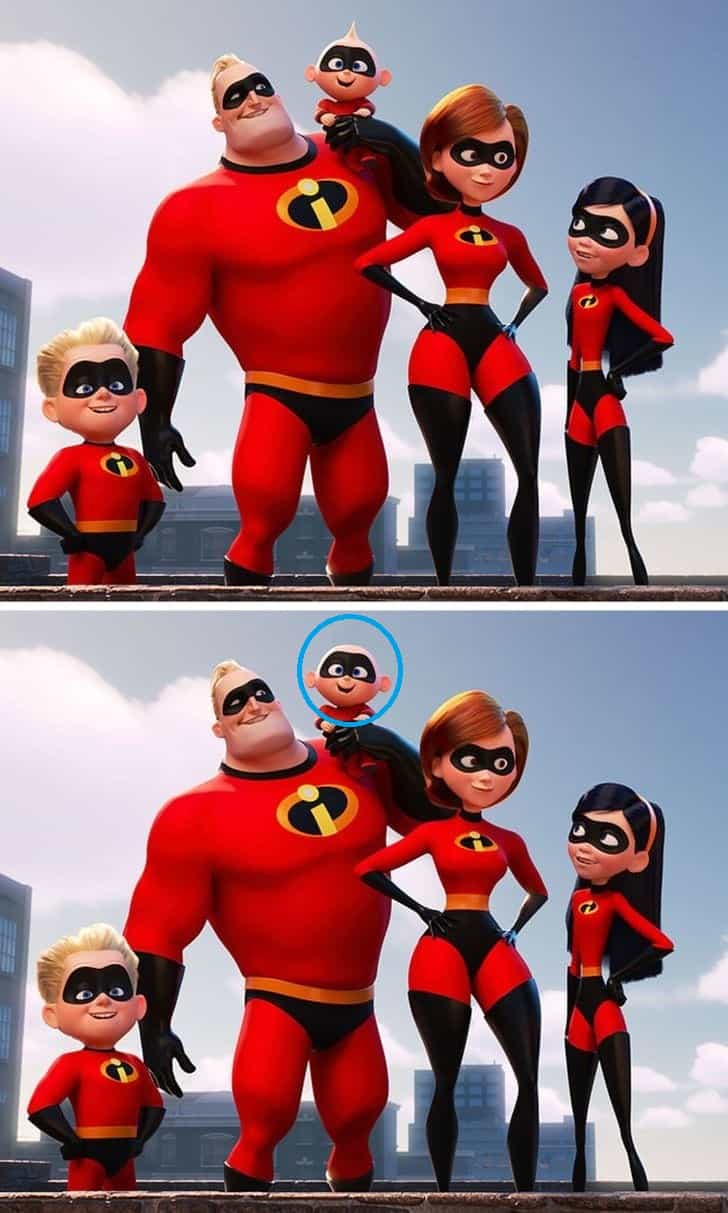 The image above shows two side-by-side images of popular cartoon characters from the film The Incredibles.