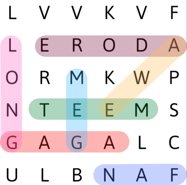 Finding the hidden words in a grid of letters is the fundamental idea of a puzzle game.