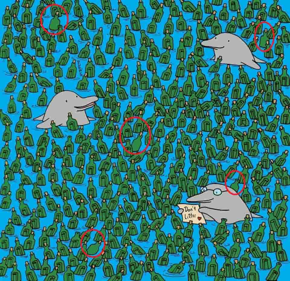 Seek and Find Puzzle: Can you spot 5 empty bottles in 10 seconds