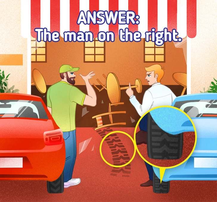 Tyre tracks can be seen in this image puzzle. It is now your responsibility to determine whether of the men is telling the truth.