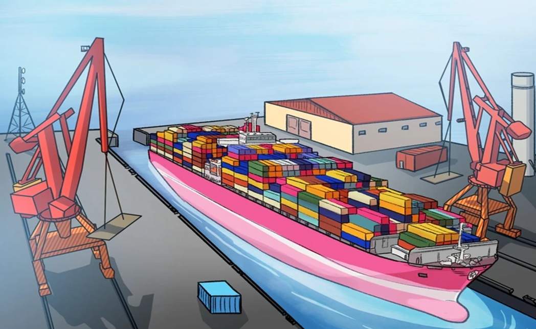 A careful examination will reveal that the entrance to the dockyard is noticeably too narrow for the ship to navigate through successfully.