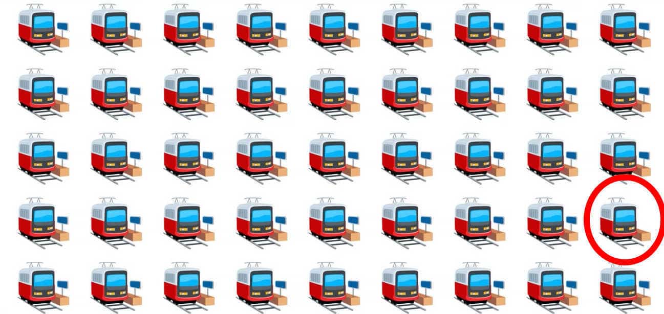 One of the trains is distinct from the others, and you must identify it in three seconds.