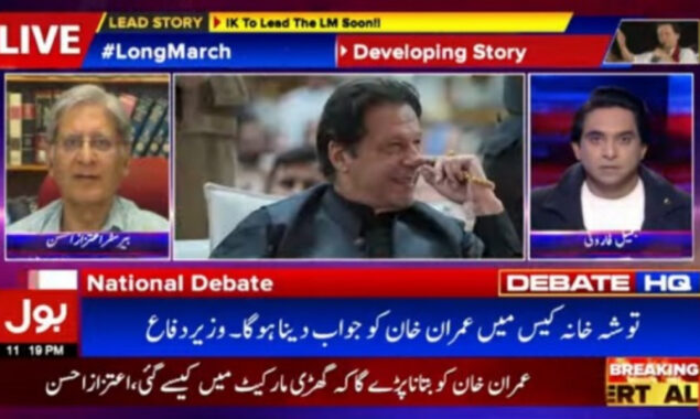 اعتزاز احسن کا کہنا تھا کہ میڈیا کے ہر کلپ میں آدھی حقیقت ہوتی ہے، عمران خان کو بتانا پڑے گا کہ گھڑی مارکیٹ میں کیسےگئی۔