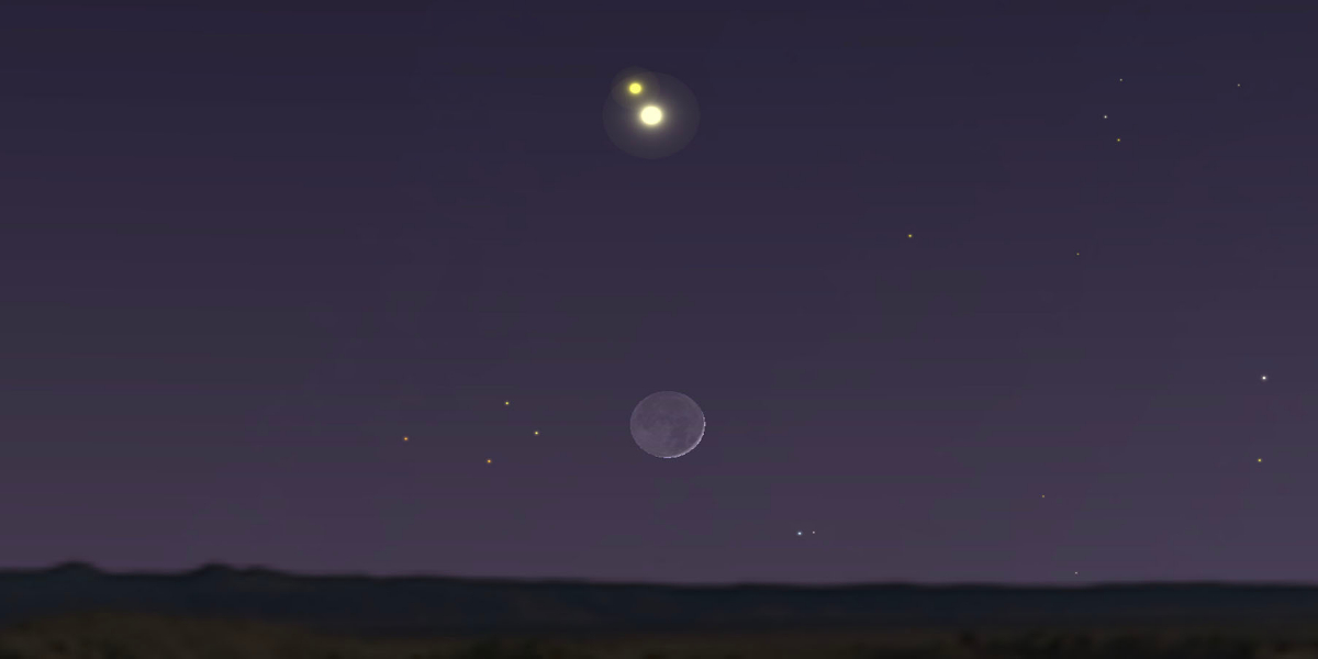 سیارہ مشتری اور چاند کی قربت کا یہ منظر کسی دوربین کے بنا دیکھا جاسکے گا۔