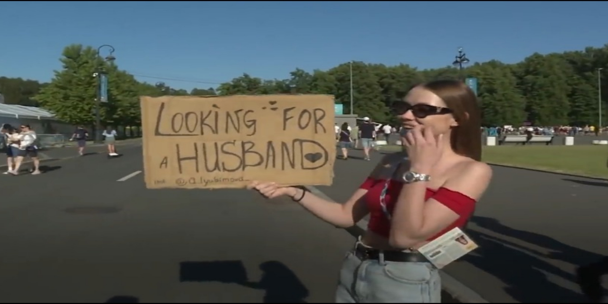 روس میں رشتے کی تلاش میں اشتہار لئے ایک روسی نوجوان حسینہ سڑک پر نکل آئیں۔