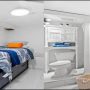 اس باتھ روم میں آرام دہ بستر بھی ہے جس کے نچلے حصے میں درازیں موجود ہیں۔