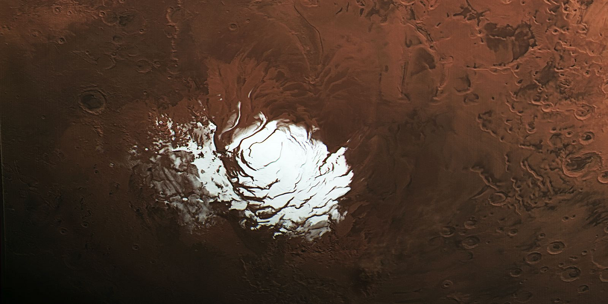 2018 میں مبینہ طور پر مریخ کے برف سے ڈھکے جنوبی قطب کے نیچے پانی دیکھا گیا تھا۔