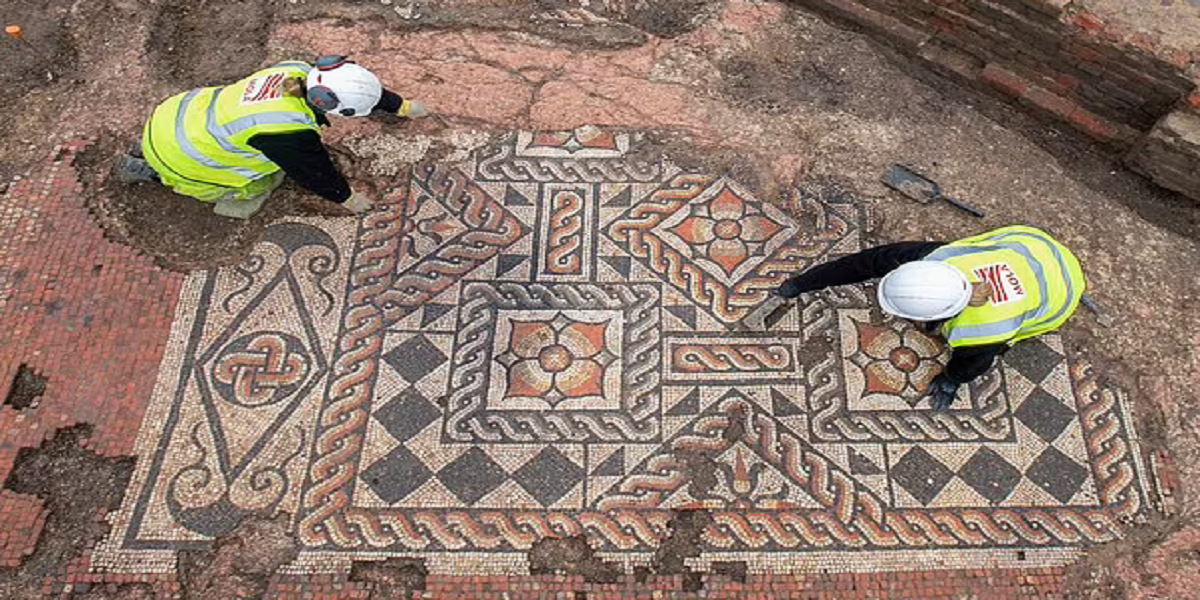 ماہرین کے مطابق لندن میں دریافت ہونے والا یہ موزائک جو اپنی قسم کا سب سے بڑا ہے، کسی دور میں رومیوں کے کھانے کے کمرے کا فرش تھا۔