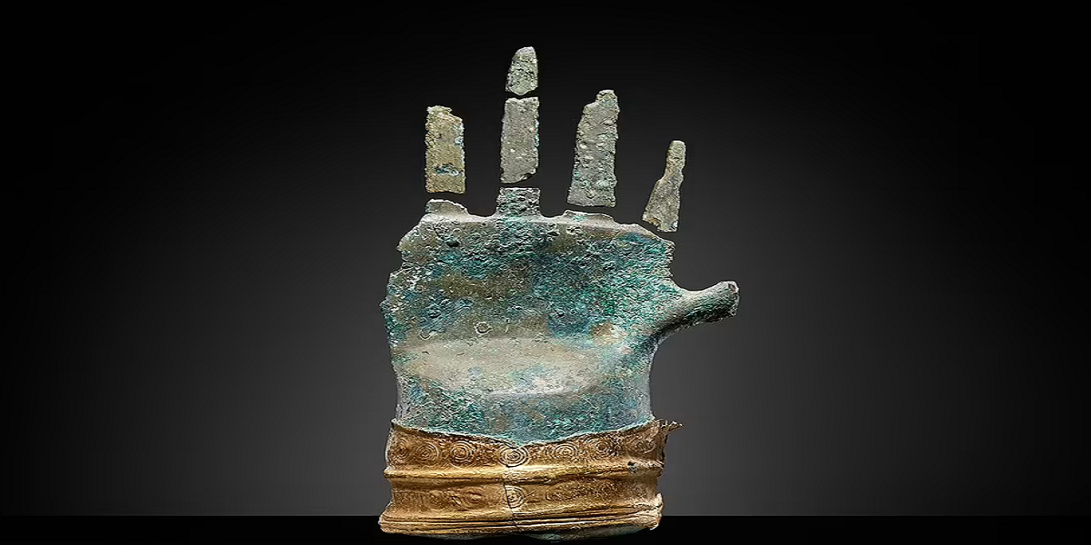 یہ ہاتھ کانسی کا بنا ہوا ہے جس کا کف سونے کا ہے اور یہ 1500 قبلِ مسیح سے 1400 قبلِ مسیح کے درمیان بنایا گیا تھا۔