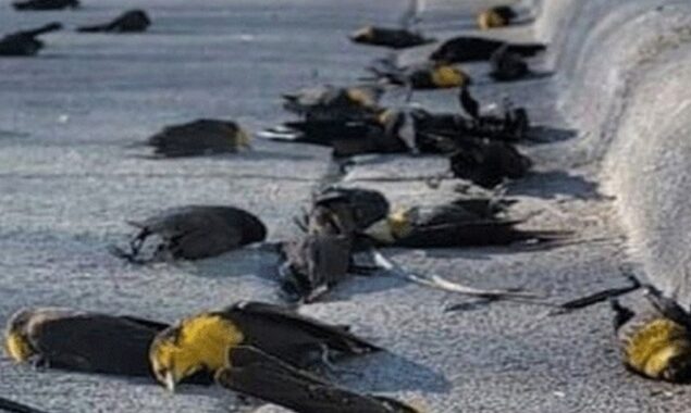 ویڈیو میں دیکھا جاسکتا ہے کہ درخت گرنے کے وقت سینکڑوں پرندے اڑے اور درخت کے گِرتے ہی متعدد پرندے اس کی زد میں آکر مر گئے۔
