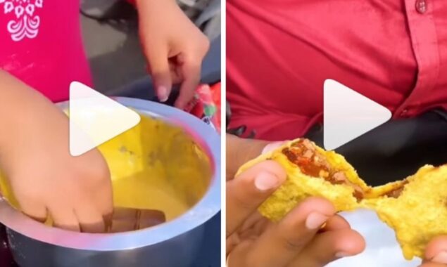 وائرل ہونے والی ویڈیو میں دیکھا جا سکتا ہے کہ ایک لڑکی ڈیری ملک پکوڑے بنا رہی ہیں۔