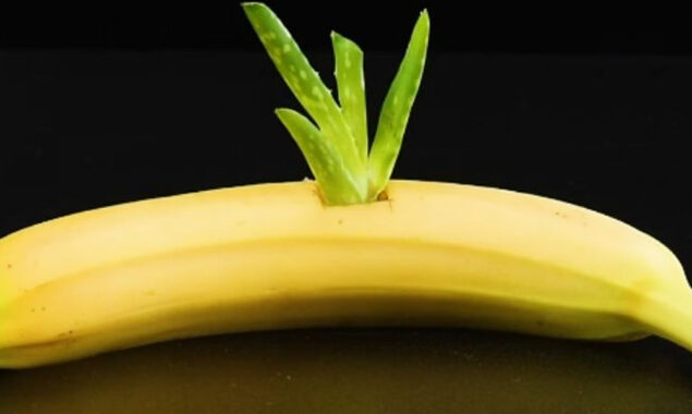 کیلا ایلوویرا کے نئے پودے کو اگانے کے لیے بہترین پھل ہے،کیلے کے گرد جلد کو چھوڑ دیں اور درمیان میں ایک چھوٹا ٹکڑا کاٹ دیں۔