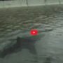 ایک اور وائرل ویڈیو میں دیکھا جاسکتا ہے کہ شارک سیلابی پانی میں محفوظ راستہ لینے کی تگ ودو کررہی ہے۔
