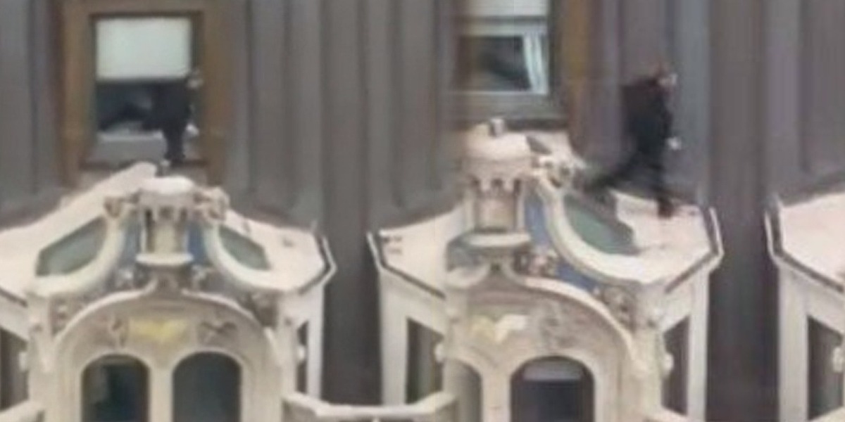 امریکی شہر نیویارک کے علاقے مین ہیٹن میں واقع 300 فِٹ بلند عمارت پر نامعلوم فرد کو ایک چھجے سے دوسرے چھجے پر دوڑتے ہوئے دیکھا جاسکتا ہے۔