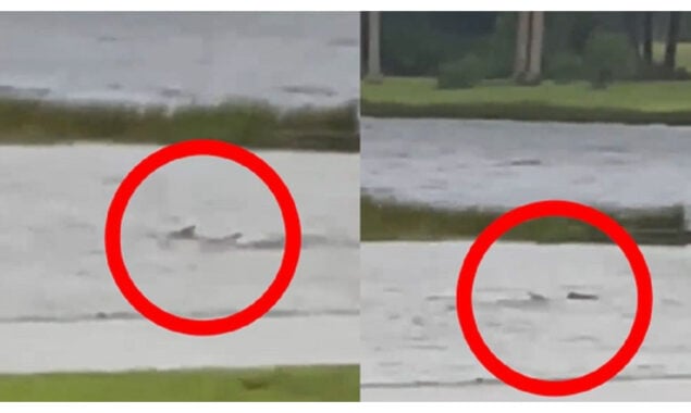 ایسے ہی ایک ویڈیو سوشل میڈیا پرتیزی سے وائرل ہو رہی ہے جس میں دیکھا جا سکتا ہے کہ ایک شارک اس طوفان میں سیلاب زدہ گلیوں میں تیراکی کرتی پہنچ گئی ہے۔