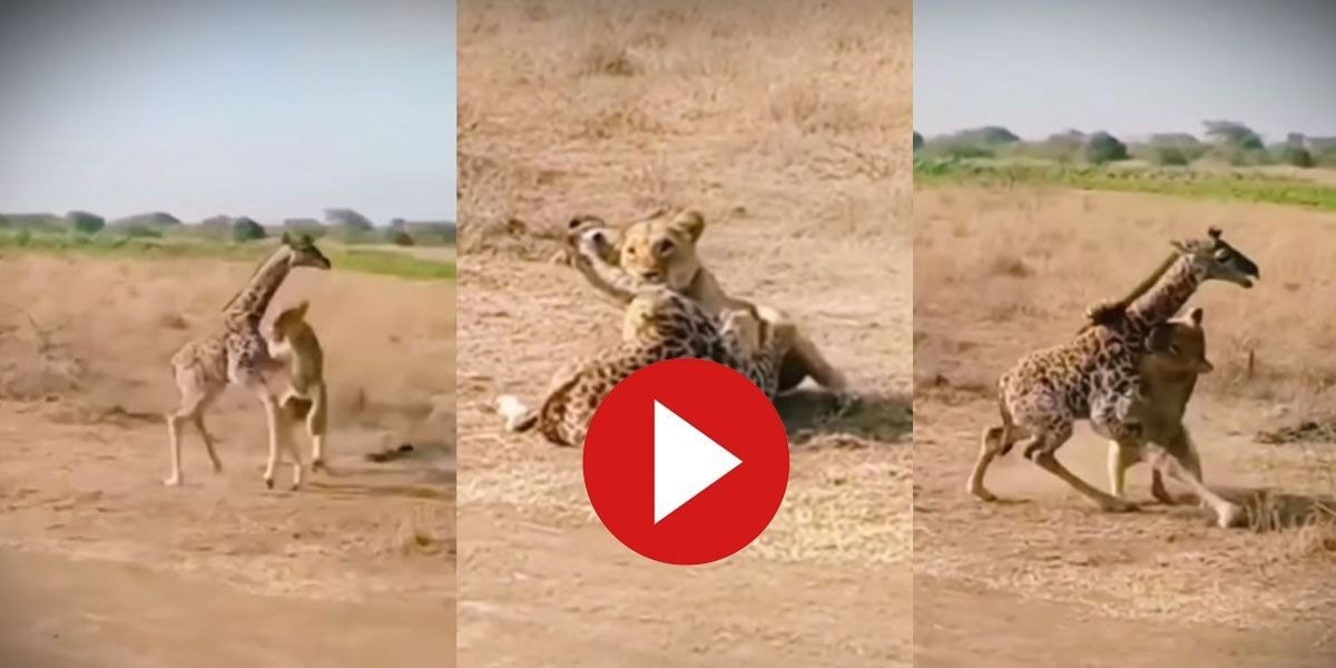 ایک ویڈیو سوشل میڈیا پر وائرل ہوگئی ہے جس میں شیر سے بچے کو بچانے کے لیے زرافہ نے اپنی جان کی فکر بھی نہ کی۔