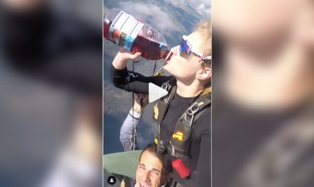 سوشل میڈیا پرایک ویڈیو تیزی سے وائرل ہو رہی ہے جس میں دیکھا جا سکتا ہے کہ ایک لڑکی دورانِ اسکائی ڈائیور کرین بیری جوس پی رہی ہے۔